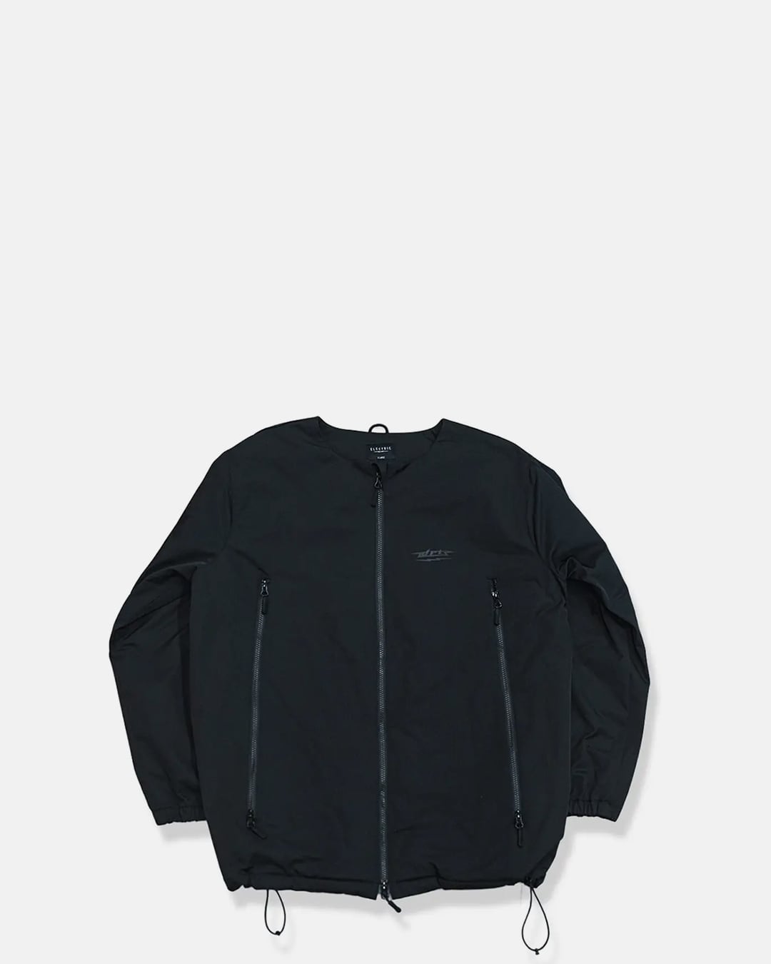 フーディ着用を想定して襟無し仕様。各所ドロッパーコード付きでサイズ〜シルエットを調整可能。真冬のインナーウェアとして、また風を通さない生地になっているのでアウターとしても機能します。 M サイズ 着丈 73 身幅 60 肩幅 61